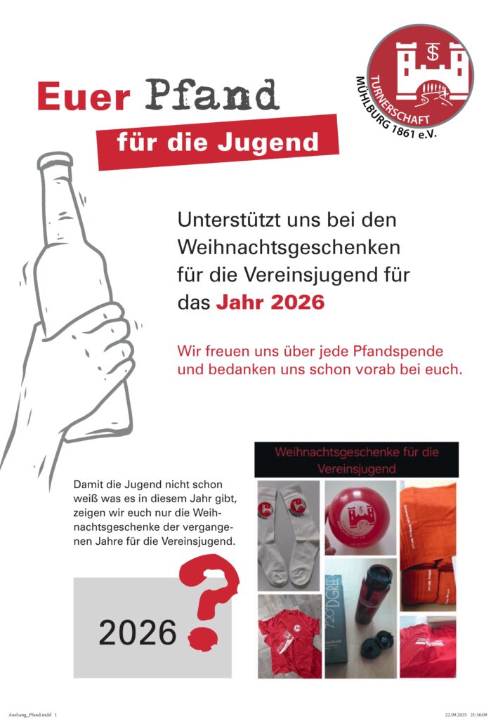 Die Turnerschaft Mühlburg ist ein ehrenamtlich geführter Sportverein. Es gibt zahlreiche und vielseitige Bereiche sich freiwillig einzubringen. Wenn Du dabei sein und Dich für ein gelungenes Miteinander in unserer Vereinsgemeinschaft einbringen möchtest, klicke hier.